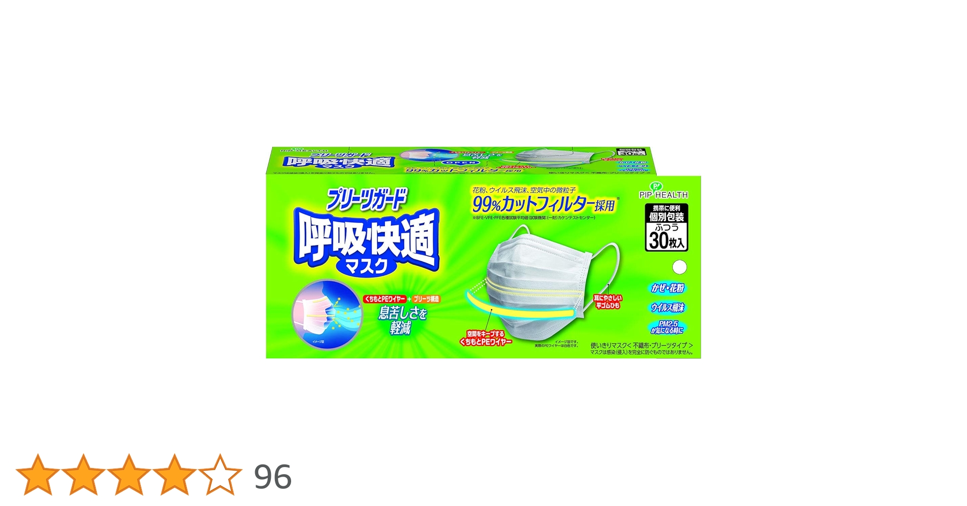 ピップヘルス プリーツガード 呼吸快適 マスク ふつうサイズ 個別包装 30枚入